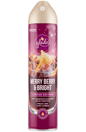 Glade légfrissítő spray Merry Berry & Bright karácsonyi illattal, mely csodálatos aromákkal tölti be otthonod. A hagyományos skandináv Glögi bor, a harsogó citrusfélék, a lédús gyümölcsök és a meleg fűszeres illatok csodálatos világa legszebb karácsonyi e