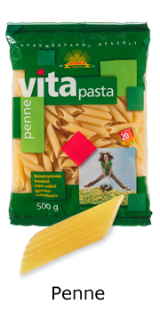 Tojás nélkül, speciális, magas minőségű durum őrleményből készül a 7 formátumú Vita Pasta termékcsalád. A terméket egyértelműen meghatározó durumbúzát a vetőmagtól kezdve kontrolláljuk, az őrleményt pedig saját malmunkban állítjuk elő, ezzel is garantálva a kiváló minőséget. A modern, fiatalos, vitalitást sugalló csomagolás egy könnyed ízű, magas vízfelvevő képességű - és így gazdaságos - olasz típusú tésztát takar. Az ízletes, alaktartó és ruganyos durumtészták a koleszterinmentes táplálkozás fontos és finom kellékei. Kényelmi termékről lévén szó, nem elhanyagolható, hogy a főzési idejük rövidebb, mint a hagyományos tésztáké, így kiváló alapanyaga a gyorsan és változatosan elkészíthető ételeknek. A kínálatban megtalálható két darab spenóttal és paradicsommal dúsított tésztafajta is, melyeket főleg tésztasalátának ajánlunk.
