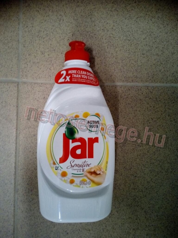 ntenzív formulájának köszönhetően rengeteg zsíros edényt megtisztít. A rendkívül sűrű Jar minden cseppje sokáig elég és rengeteg edényt elmosogat. Nagy mennyiségű aktív hab, hosszantartó habzás és intenzív zsíroldó hatás. Kiváló a mindennapos edények mosogatásához: az üvegpoharaktól a serpenyőkig. Kellemes illatok a konyhában mosogatás során. Adagolása: a szennyeződés mennyiségének és típusának megfelelően nyomjon pár cseppet a mosogatószivacsra! Tipp a mosogatáshoz: Ahhoz, hogy megelőzzük a baktériumok elszaporodását a mosogatószivacson, minden egyes mosogatást követően alaposan öblítsük át, nyomjunk rá és oszlassunk el benne 1-2 csepp mosogatószert!