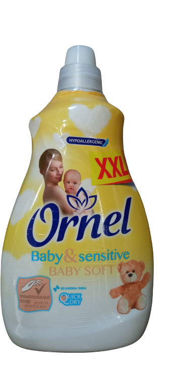 Az Ornel Baby & Sensitive Babysoft lágyító érzékeny bőrre készült, hipoallergén és bőrgyógyászatilag tesztelt, gyengéd és nem irritálja az érzékeny bőrt. A készítmény nem tartalmaz színezéket vagy illatanyagokból származó allergéneket. A kifejezetten gyengéd formula puhábbá és simábbá teszi a gyermekruhákat, törölközőket, ágyneműt és játékokat. A gondosan kiválasztott allergén mentes illatjegy, a nemzetközi szabványoknak megfelelően frissességet, könnyű és gyengéd púderes illatot biztosít a ruhaneműnek. Segíti a ruhák gyorsabb száradását és megkönnyíti a vasalást.