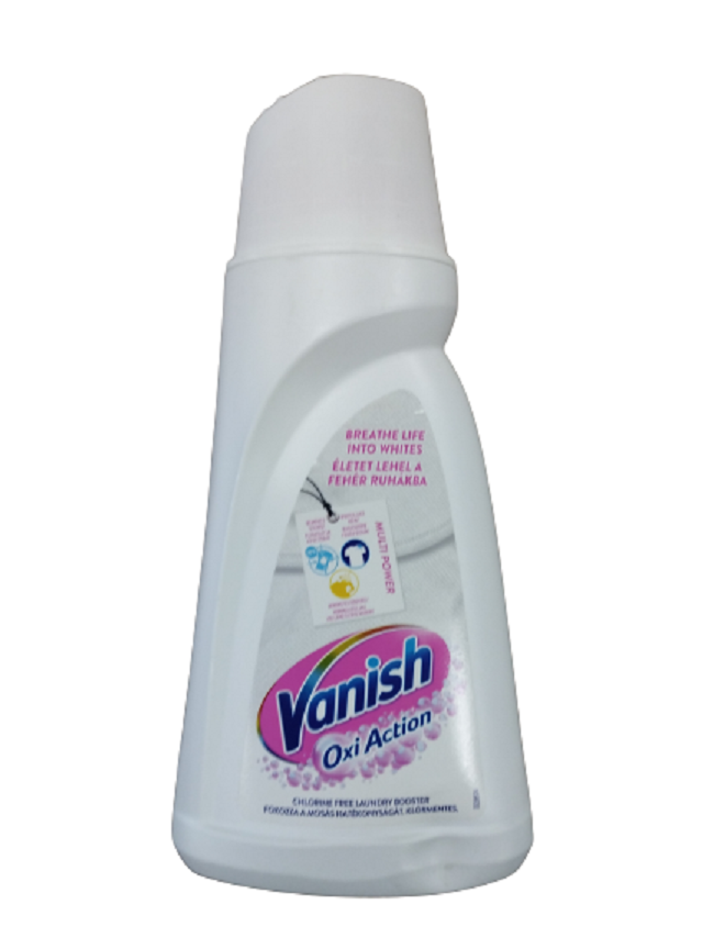 Vanish Oxi-Action folteltávolító folyadék fehér ruhákhoz. Az Oxi Action formula hatékonyan eltávolítja a más mosószerek által hátrahagyott foltokat is, már az első használatkor feloldva a szennyeződést vagy a piszkot, akár alacsony hőmérsékleten is.
